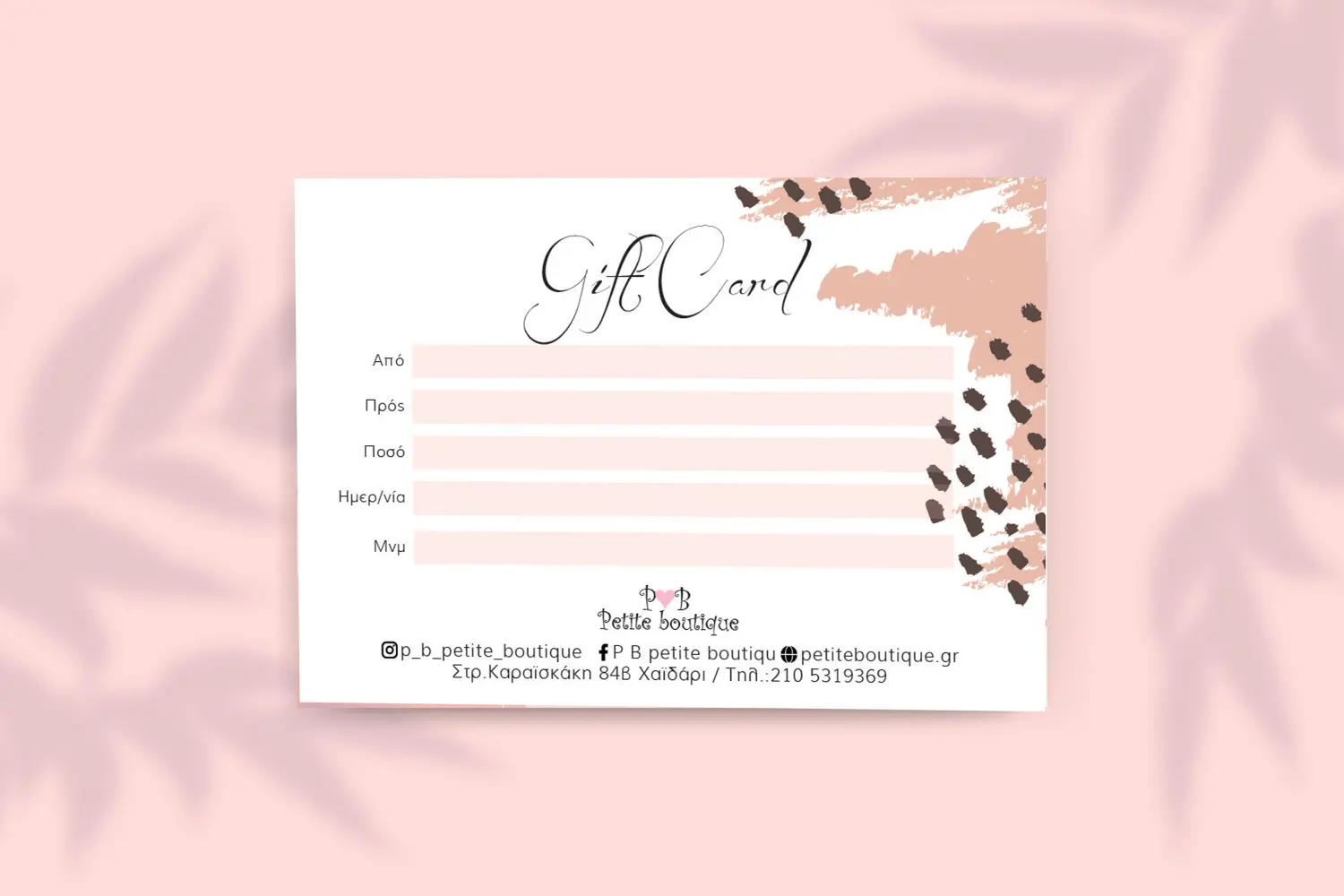 Δώστε στους πελάτες σας τη δυνατότητα να χαρίσουν τα προϊόντα σας με στυλ. Εμείς αναλαμβάνουμε τον πλήρη σχεδιασμό της δωροκάρτας σας, από το μηδέν!